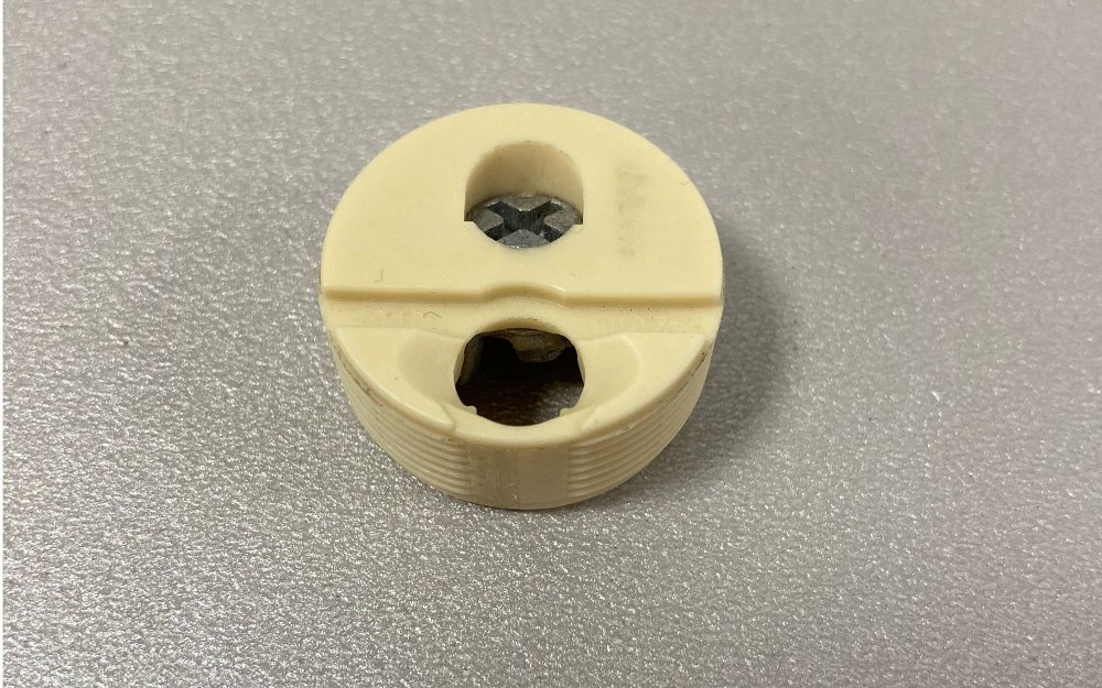 Пластмассовая корпусная стяжка светло-бежевого цвета в комплекте с шурупом из цинкового литья