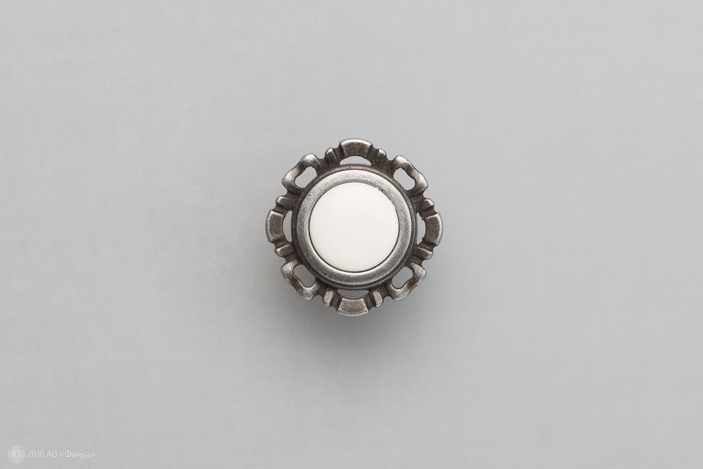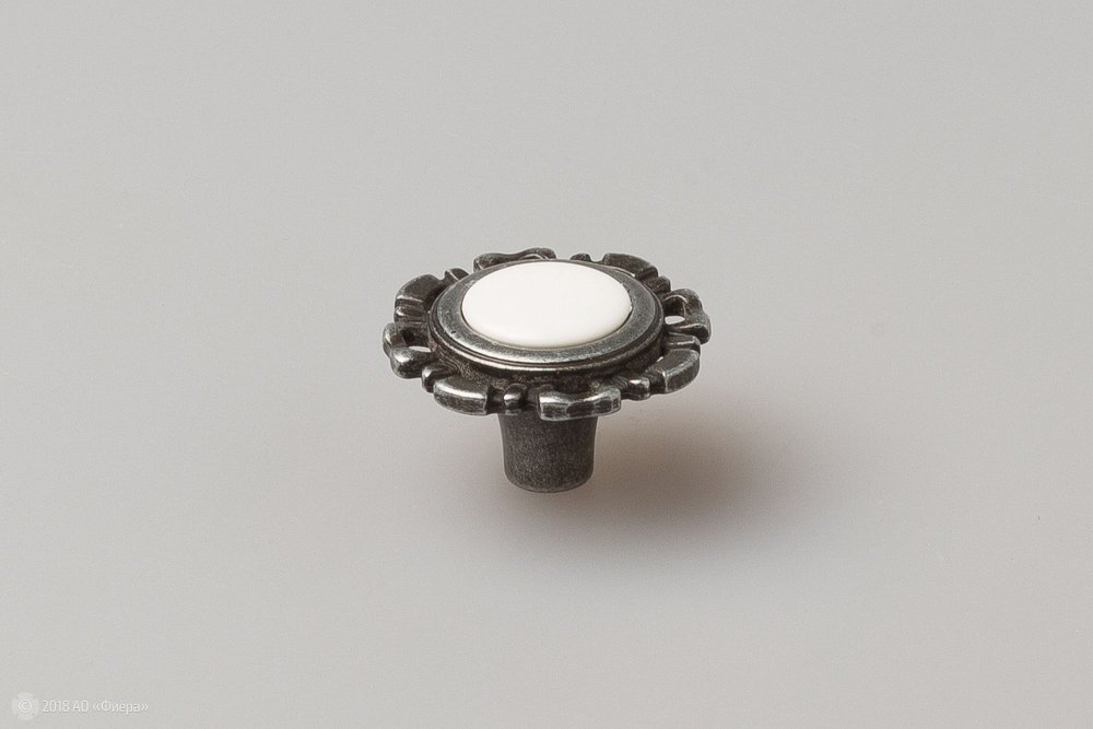 Мебельная ручка-кнопка FB033 в покрытии олово с белой вставкой отлично подходит для мебели в стиле классика.