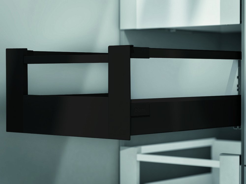 Ящик TANDEMBOX antaro отличает простой язык форм независимо от того, какой это ящик: с прямоугольным релингом или вставками. Все комплектующие выполнены в единой цветовой гамме, что еще больше подчеркивает строгий дизайн изделия.